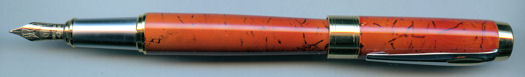 The acrylic-coated brass barrel gives this pen a substantial 'heavy' feel very much suited to a man's hand. With the added bonus of a 14ct gold nib, this pen represents exceptionally good value. |