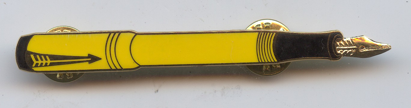 The second in the series of replicas of famous pens. This badge reproduces the Parker Snake. It measures 7.62cm x 0.7ccm
