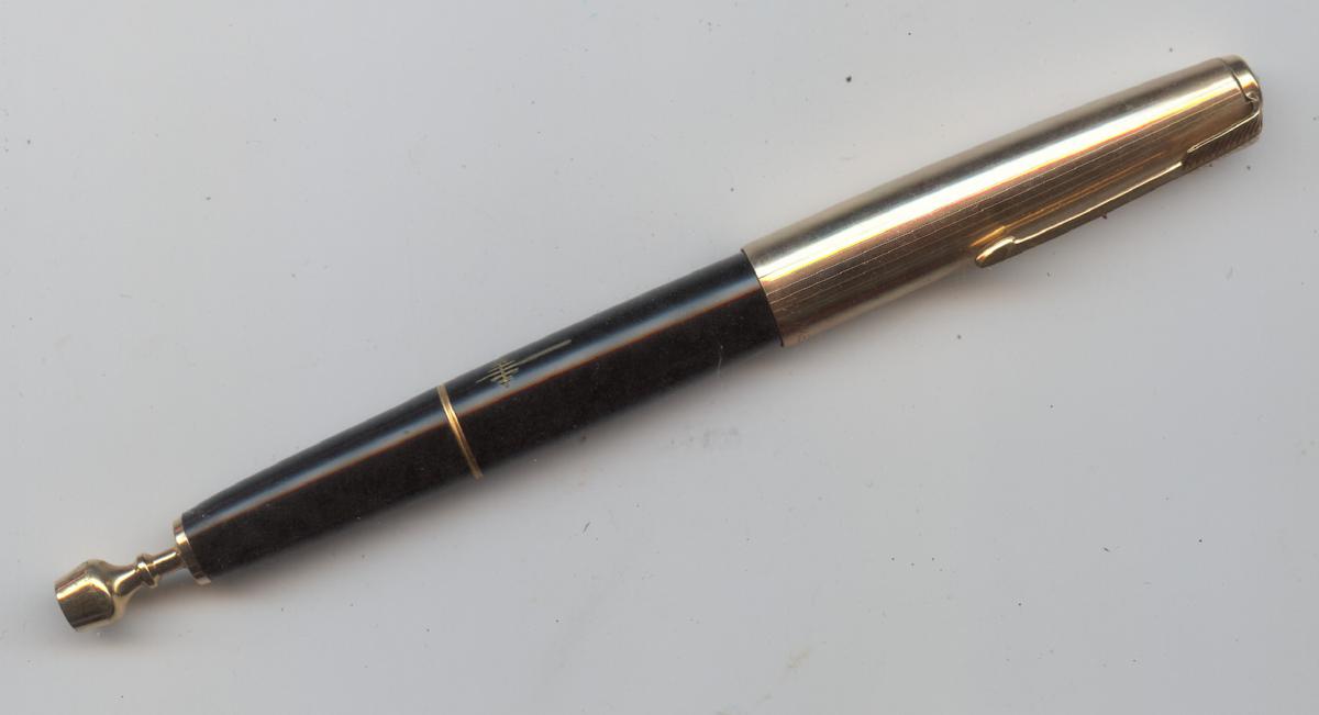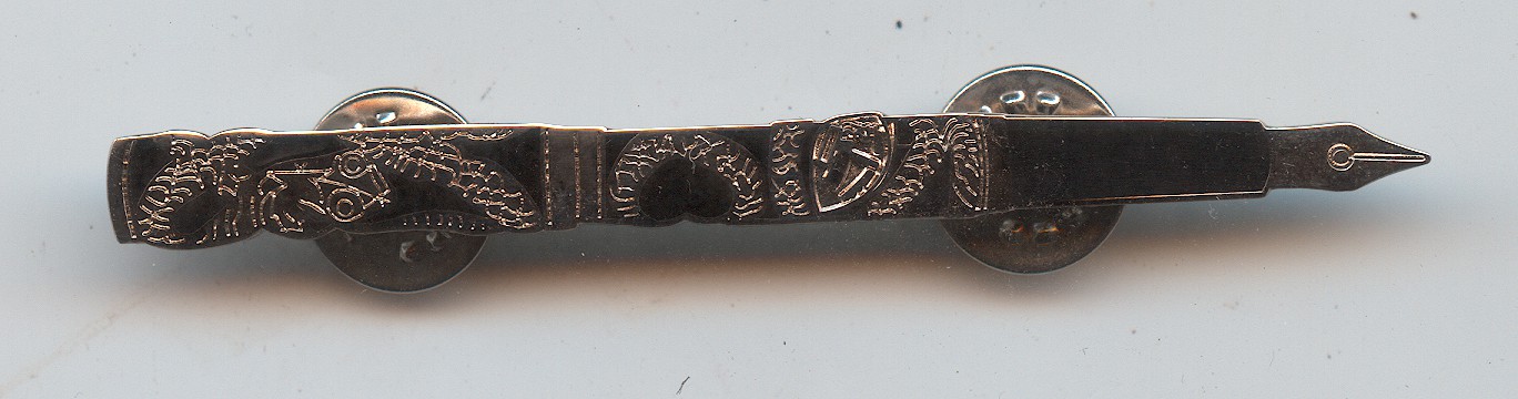 This lapel badge was the first in a series of replicas of famous pens, designed exclusively for The Pen Museum. It reproduces the Duofold Mandarin, Centennial size. It measures 8cm x 1 cm.