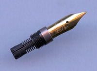 The nibs offered for sale on this page ARE THE ONLY ONES I SELL. In all other cases I need to have the pen for repair, as there can sometimes be different thread sizes etc. Of course, I have many more nibs than shown here. Just because the nib or nib grade you want doesn't appear on this list doesn't mean that I don't have it. It could be that I have the nib only, without the section, that I can fit to your existing section. Please enquire.