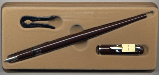 The brown Pelikan Calligraphy pen is designed to be both a desk pen and also to have a cap. It has the typical Pelikan plunger filling system and contains a stainless steel 1.5mm calligraphic nib. Also in the box is a little gizmo for unscrewing the nib so other points can be used. Mint and Boxed.